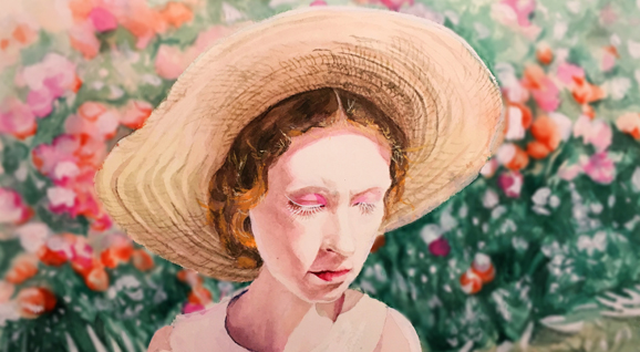 [水彩]-草帽女人像
